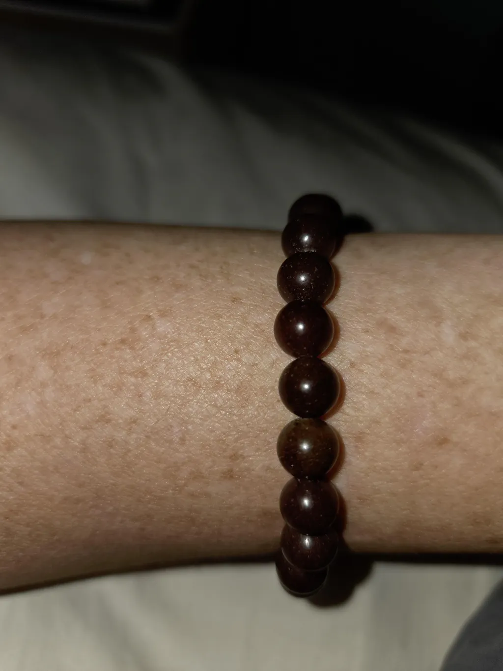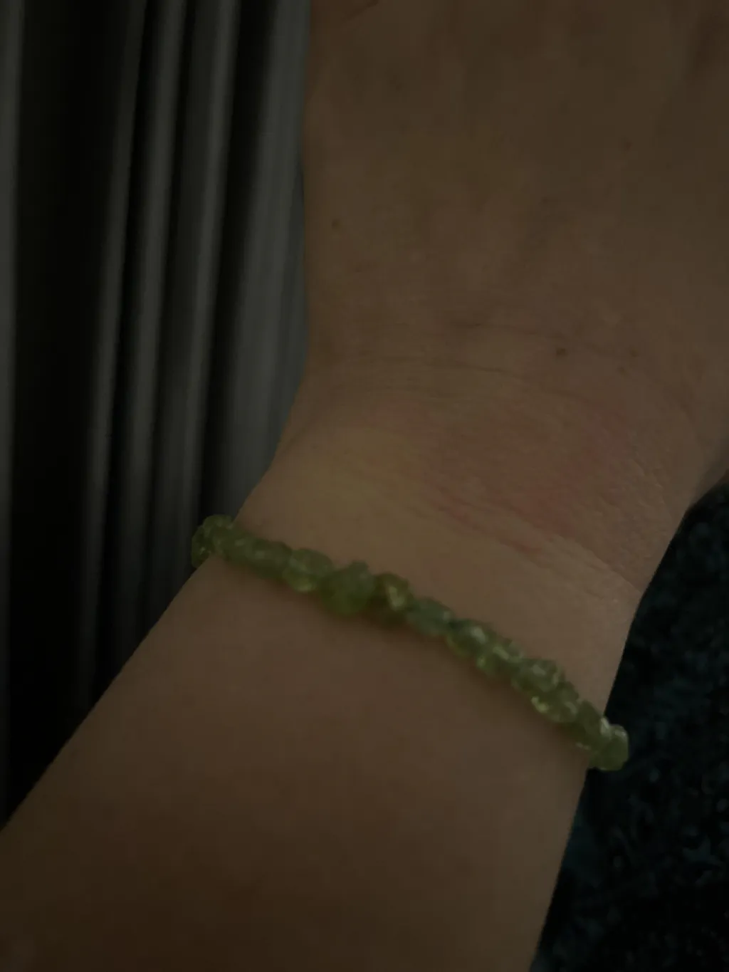 Elastic jewellery pieces should not be worn in the water (Ocean, Shower ect.) and taken off at night when sleeping (trust me.... trying to find beads that have scattered through a bed is not fun). Also, try to limit the amount of times they are stretched to full length, as this can cause excess wear and fraying on the elastic.